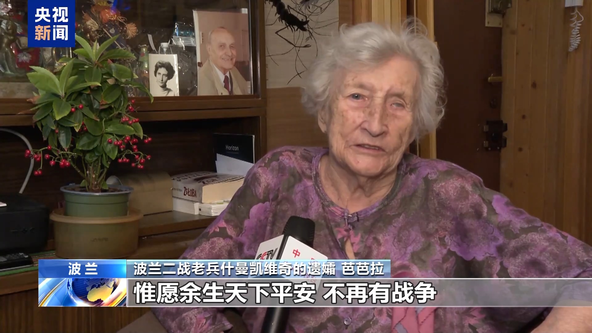 波兰二战老兵什曼凯维奇的遗孀 芭芭拉:说到底,战争是最为不幸的人间惨剧,我知道中国深受日本法西斯的侵略之苦,那时的世局纷乱如麻。如今我已风烛残年,惟愿余生天下平安,不再有战争。