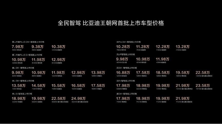 一直以来,智能驾驶技术主要集中应用于部分高端车型,消费者体验的价格门槛高。而此次比亚迪发布的智驾车型覆盖了王朝、海洋等多个系列,将高速智能领航驾驶(高速NOA)车型的价格拉低到了7万元级。